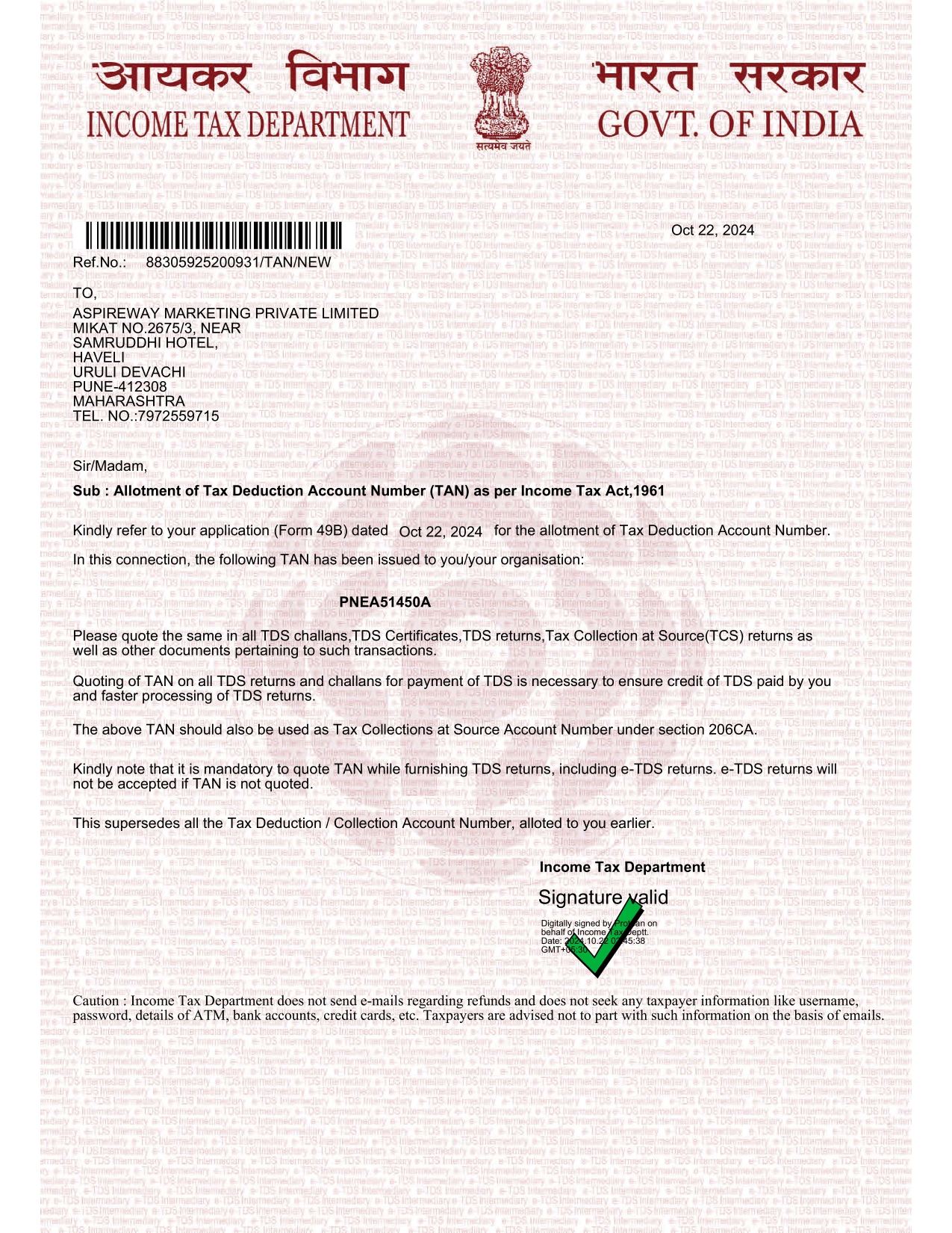 | 6 | Tax Deduction Account Number (TAN) | Download | |